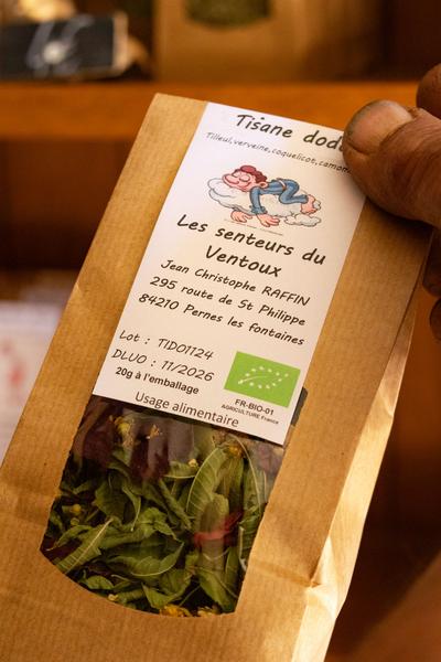 La boutique des Senteurs du Ventoux est ouverte les mercredis et samedis toute l'année, vous pourrez vous procurer de délicieuses tisanes composées de nombreuses plantes et fleurs récoltés sur place, mais aussi des eaux florales et huiles essentielles aux senteurs exquises ainsi que des sirops !
