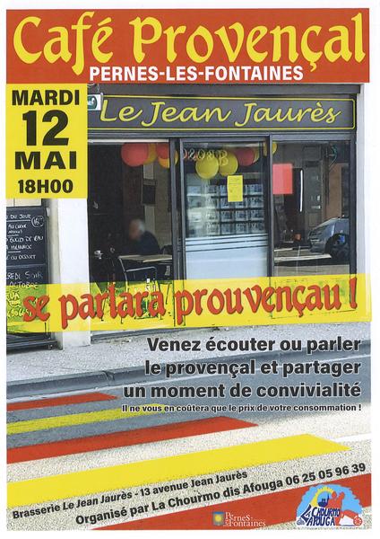 Se parlara prouvençau ! L'association "La Chourmo dis Afouga" vous propose son café provençal au bar le Jean Jaurès à Pernes les Fontaines. Venez écouter ou parler le provençal et partager un moment de convivialité !