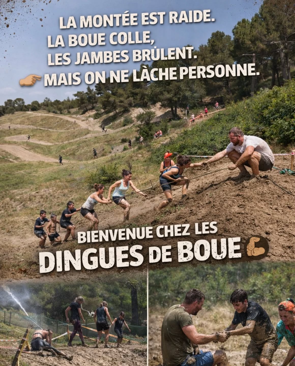Dingue de Boue est né de l’idée de réunir sport et convivialité à travers des courses à obstacles accessibles à tous. Créé pour les amateurs d’aventure et de dépassement de soi, l’événement propose des parcours variés, mêlant défi physique et ambiance festive, où solidarité et bonne humeur sont les maîtres-mots. Depuis ses débuts, Dingue de Boue attire des participants de tous horizons, prêts à se salir pour vivre une expérience inoubliable !