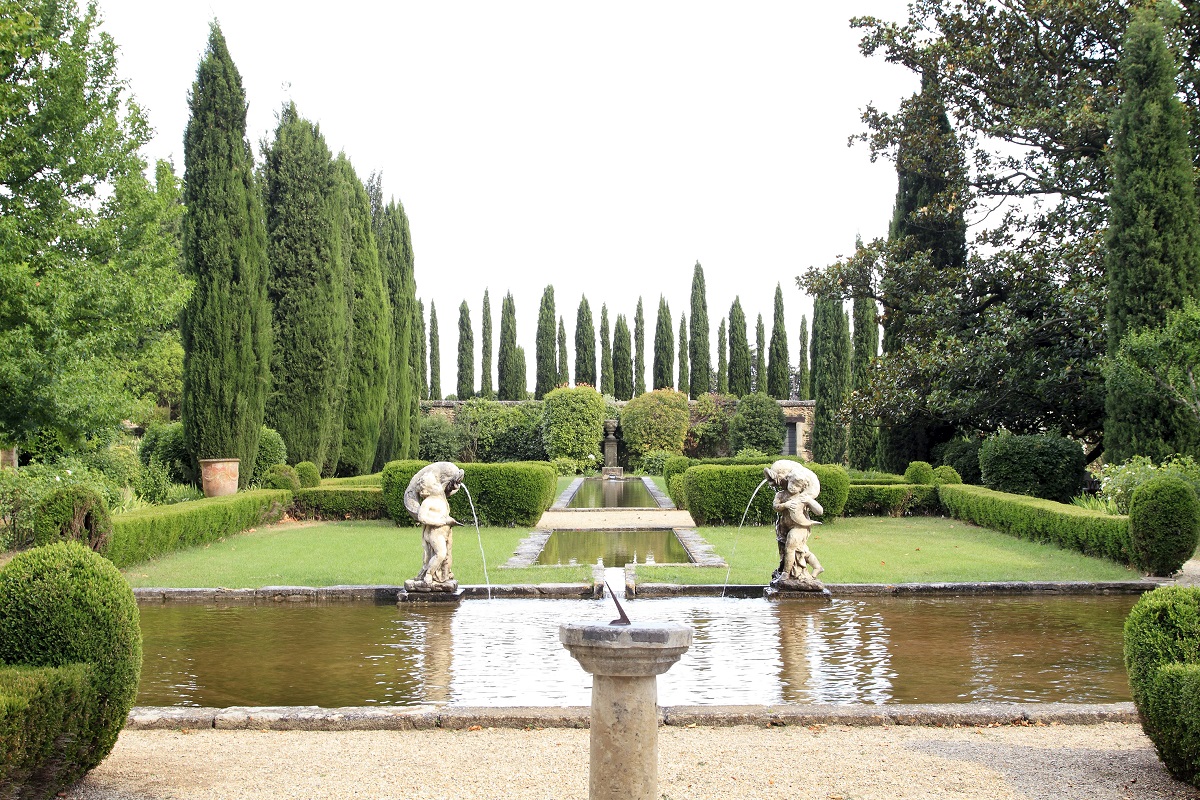 Le jardin s'articule autour de trois bassins miroirs, dessinés par le paysagiste danois Mogens Tvede, alimenté par la Sorgue, rivière emblématique du Vaucluse et si chère à de nombreuses personnalités comme Pétrarque. Ces derniers sont bordés de corbeilles de lauriers-tins, de buis et de cyprès et également encadrés de lagestroemias centenaires.
